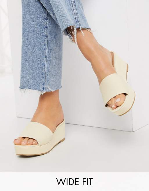 ASOS DESIGN Wide Fit Tazlin demi wedges in cream denim