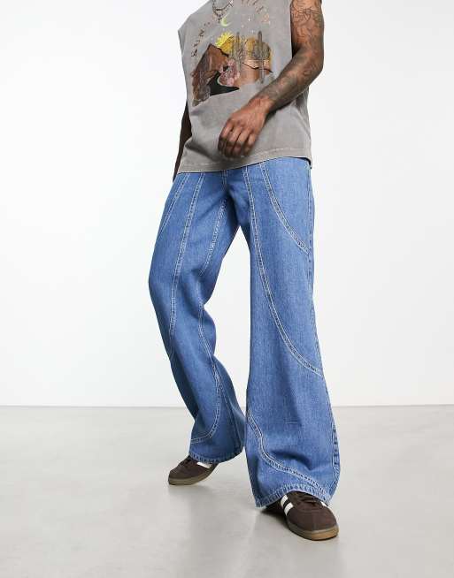 ASOS DESIGN wide flare jeans in mid blue wash