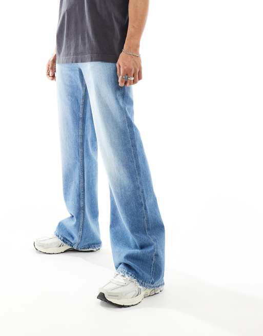 ASOS DESIGN wide flare jeans in mid tinted wash blue