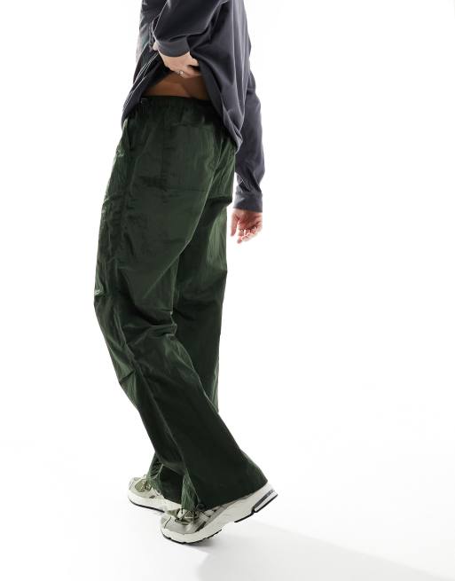 ASOS DESIGN wide hem baggy nylon pants in khaki