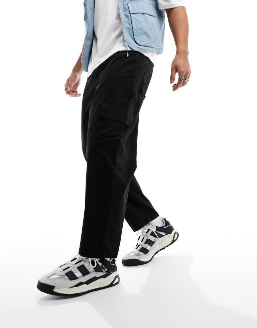ASOS DESIGN wide leg cargo pants in black