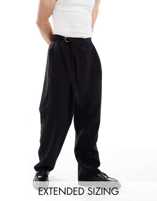 ASOS DESIGN wide leg dress pants with crossover side belt in black