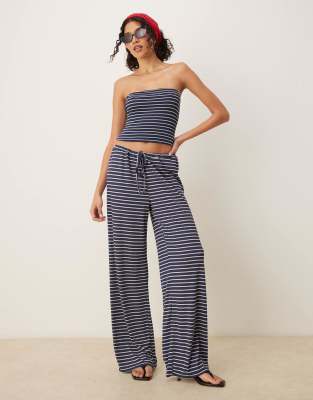 ASOS DESIGN wide leg pants in navy stripe - part of a set