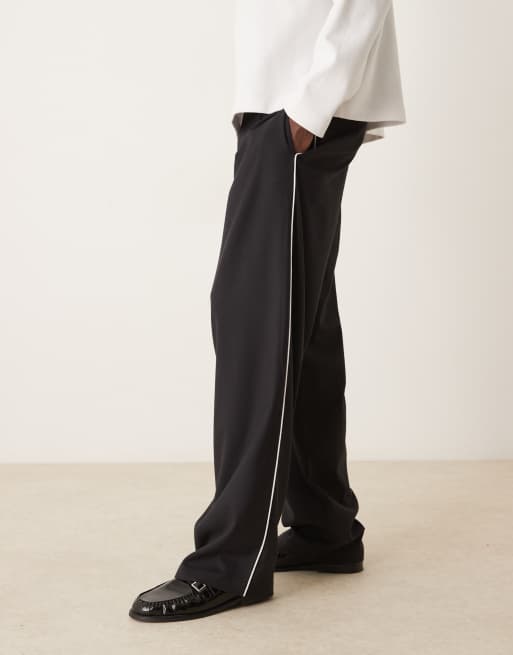 ASOS DESIGN wide leg smart pants with contrast side piping in black