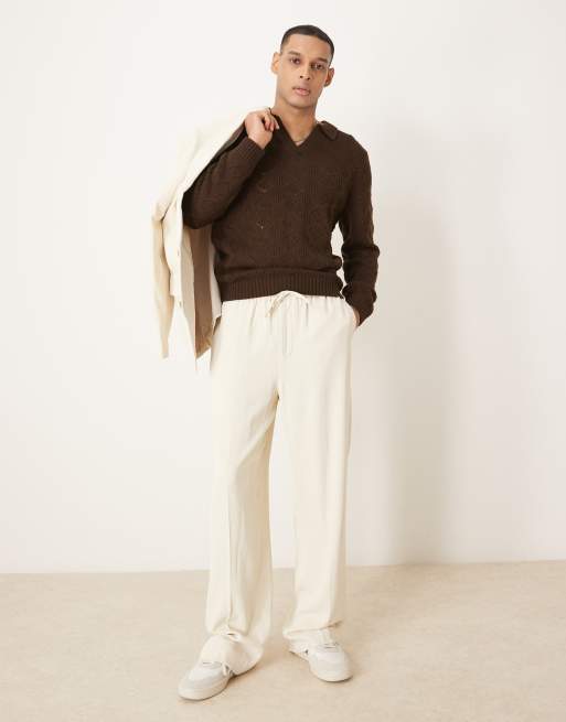 ASOS DESIGN wide leg suit pants in light ecru