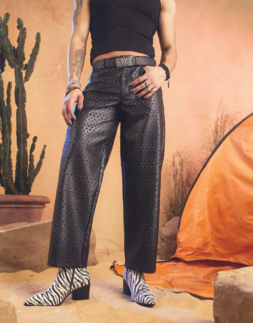 ASOS DESIGN wide pants in star leather look - BLACK
