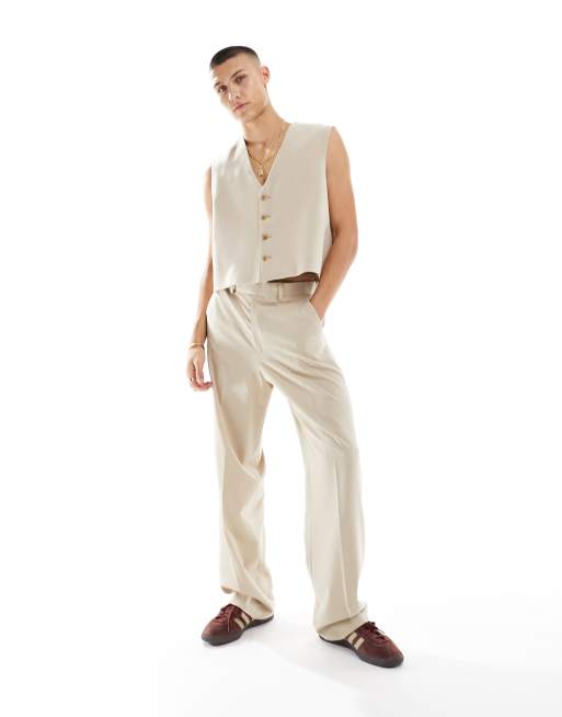 ASOS DESIGN wide suit pants in stone