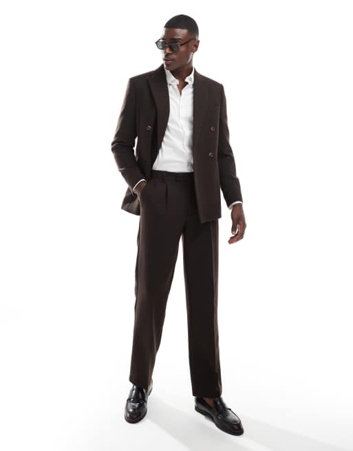 ASOS DESIGN wool blend straight leg suit pants in brown