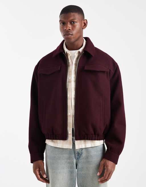ASOS DESIGN wool look harrington jacket in burgundy