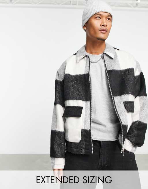 ASOS DESIGN wool look Harrington jacket in monochrome check