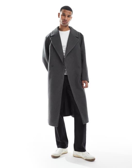 ASOS DESIGN wool look longline coat in gray