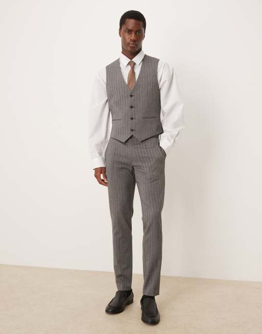 ASOS DESIGN wool look skinny suit in charcoal gray herringbone