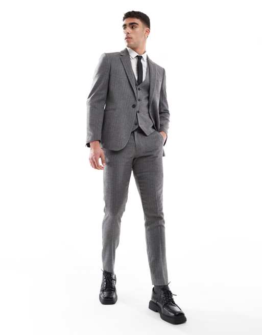 ASOS DESIGN wool look skinny suit set in dark gray