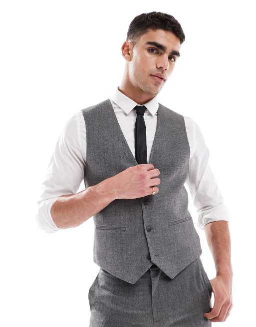 ASOS DESIGN wool look skinny suit vest in dark gray