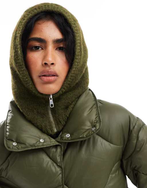 ASOS DESIGN wool mix knit hood in khaki with zip detail