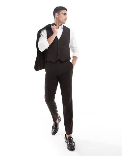 ASOS DESIGN wool rich slim suit vest in brown herringbone