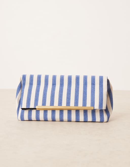 ASOS DESIGN woven fold-over clutch bag in blue stripe