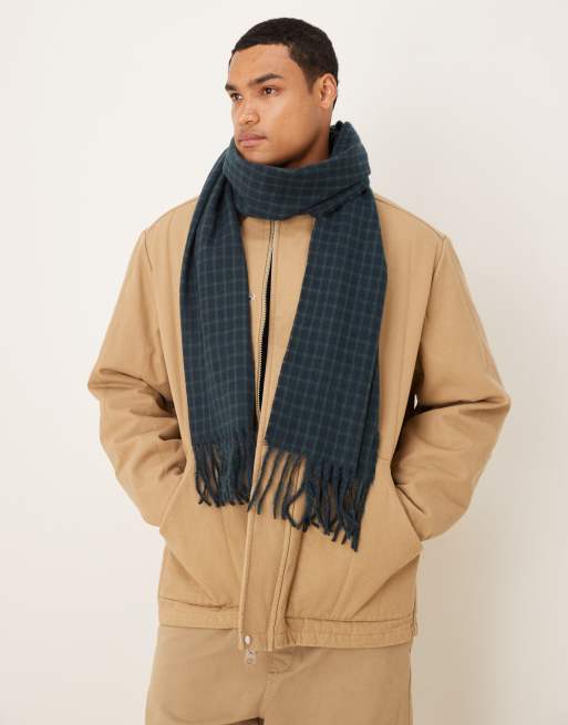 ASOS DESIGN woven houndstooth check scarf in navy and green