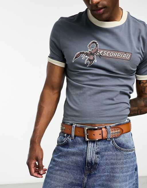 ASOS DESIGN woven stud western belt in brown