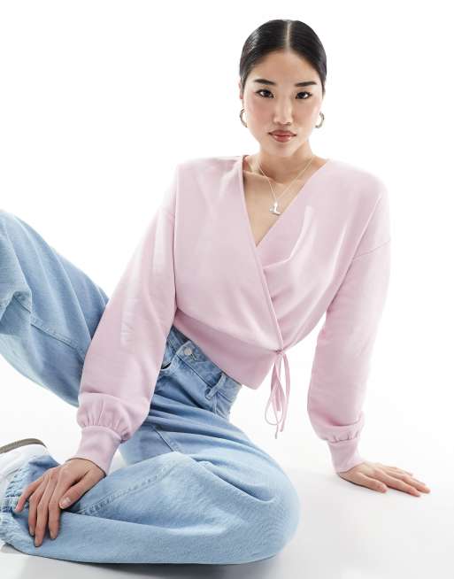 ASOS DESIGN wrap front ballet sweatshirt in baby pink