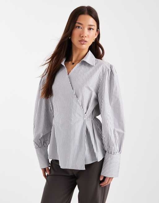 ASOS DESIGN wrap shirt in gray stripe