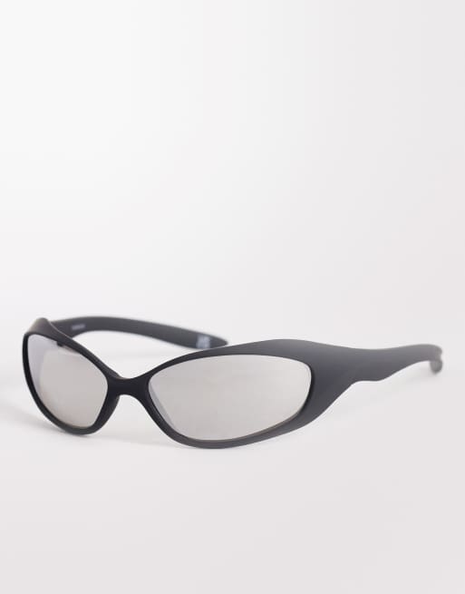 ASOS DESIGN wrap sunglasses with matte black frames and mirrored lenses