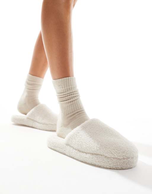 ASOS DESIGN Zina closed toe slippers in cream sherpa