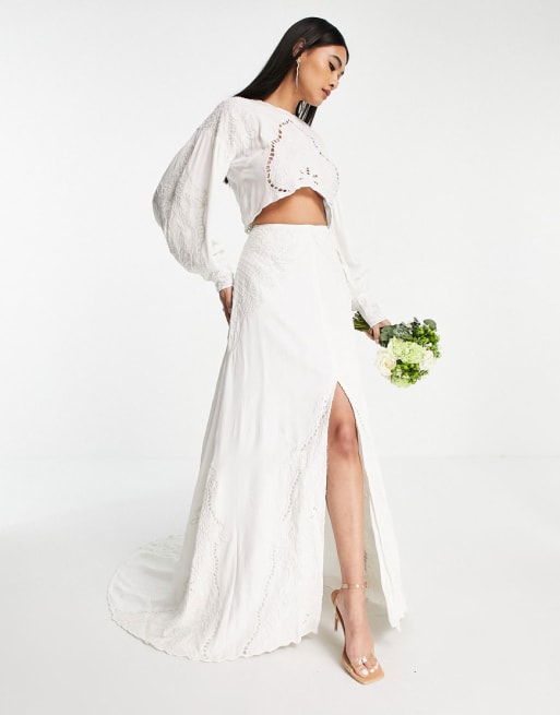 ASOS EDITION top & maxi skirt with cutwork embroidery in ivory - IVORY