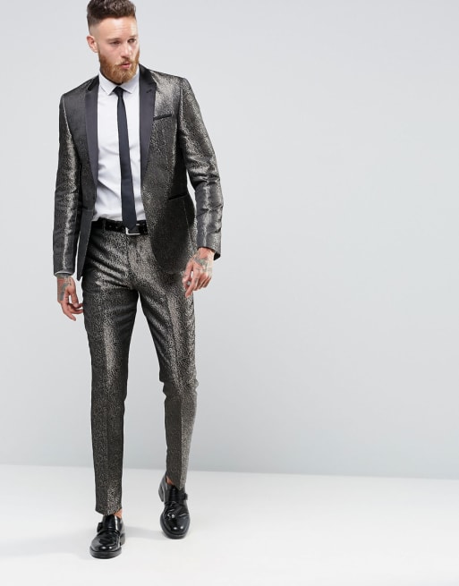 ASOS Slim Suit In Gold Pattern
