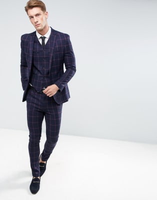 ASOS Super Skinny Suit In Navy And Pink Windowpane Check