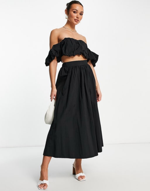 ASOS EDITION crop top & cotton full midi skirt with tiers in black - BLACK