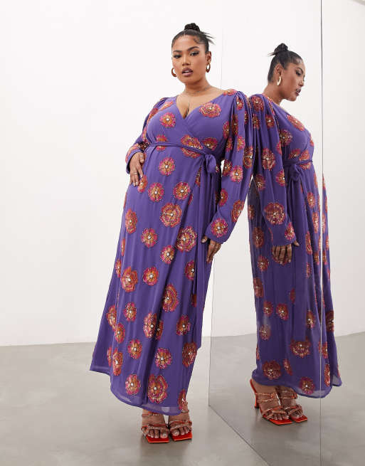 ASOS EDITION Curve wrap midi dress in floral sequin in purple