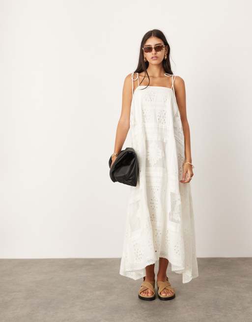 ASOS EDITION embroidered cami handkerchief hem midi dress in white
