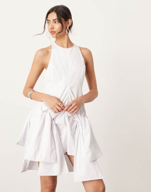 ASOS EDITION racer neck drop waist mini dress with knot detail skirt in white