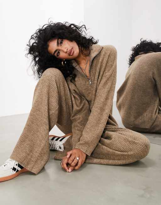 ASOS EDITION ribbed knit zip sweater in taupe