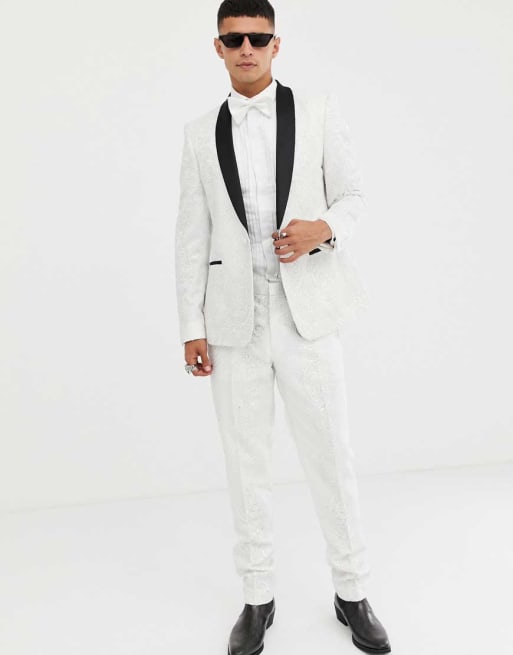 ASOS EDITION skinny tuxedo suit in sequin and lace embellished white sateen
