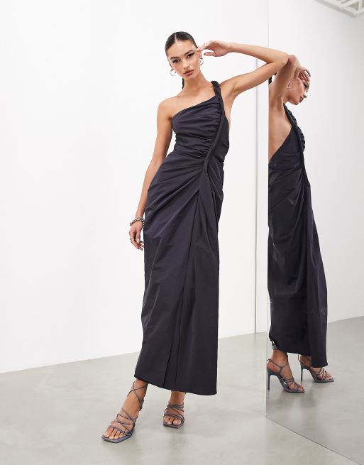 ASOS EDITION twist detail one shoulder maxi dress in steel gray