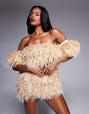 ASOS LUXE extreme raffia bardot top in sand - part of a set