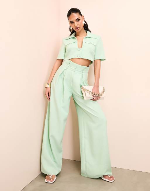 ASOS LUXE paperbag wide leg pants in green