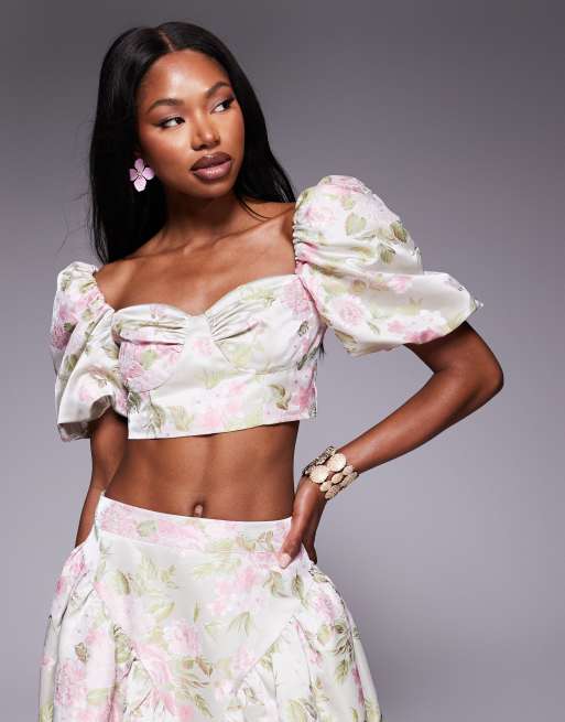 ASOS LUXE puff sleeve top in tulip jacquard - part of a set