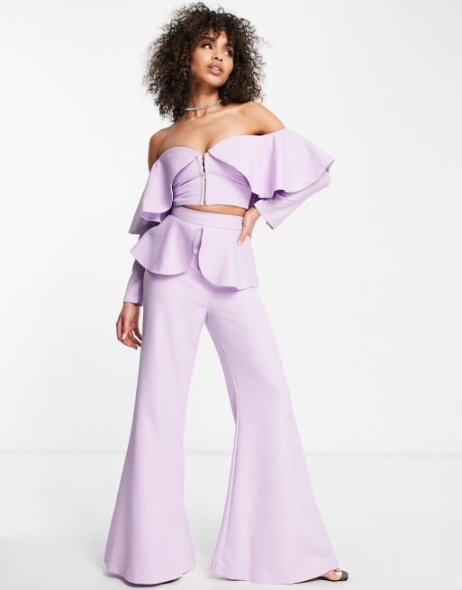 ASOS LUXE tailored set with frill overlay in lilac - part of a set