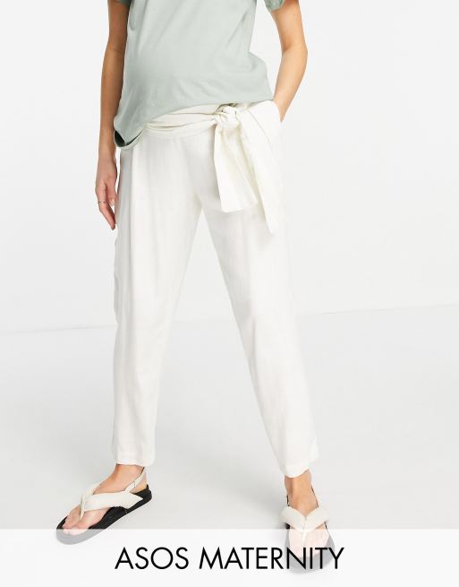 ASOS DESIGN Maternity belted tapered linen pants in cream