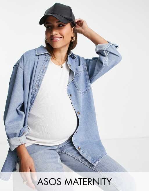ASOS DESIGN Maternity denim shirt in midwash blue
