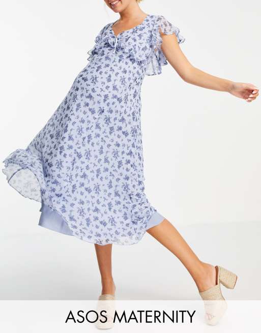 ASOS DESIGN Maternity floral ruffle detail midi dress with tie detail