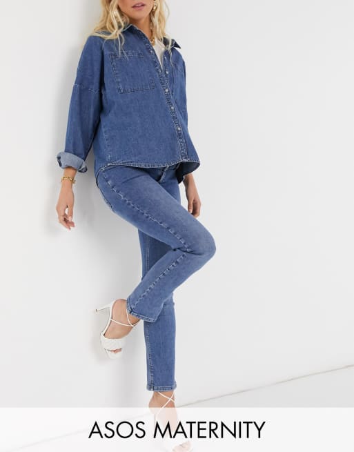 ASOS DESIGN Maternity high rise 'sassy' cigarette jeans in authentic midwash with elasticated side waistband