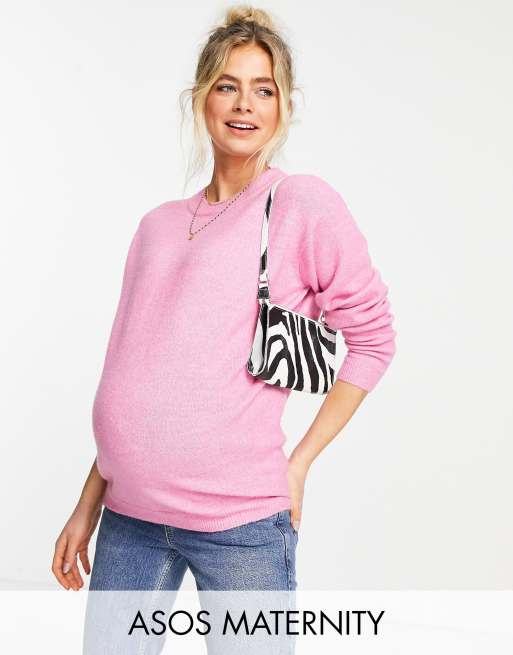 ASOS DESIGN Maternity oversized crew neck sweater in pink