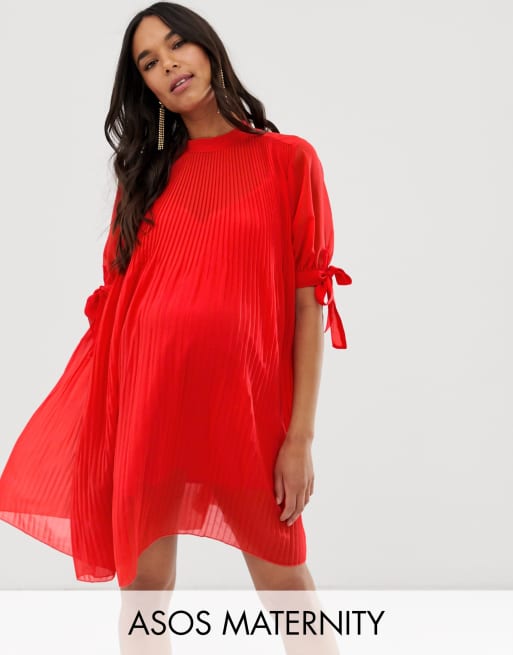 ASOS DESIGN Maternity pleated trapeze mini dress with tie sleeves