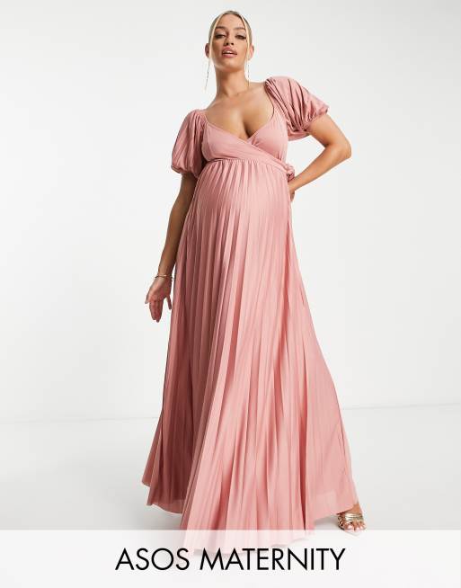 ASOS DESIGN Maternity puff sleeve wrap maxi dress in rose