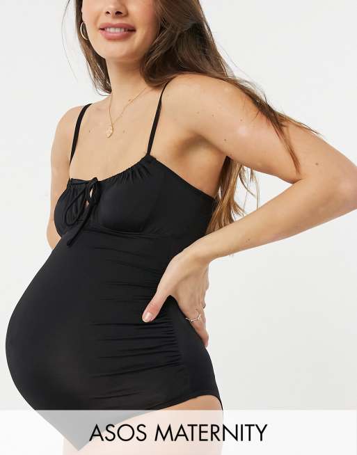 ASOS DESIGN maternity ruched tie front swimsuit in black