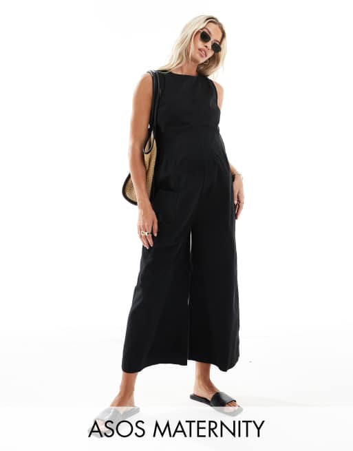 ASOS DESIGN Maternity twill minimal sleeveless jumpsuit with wide leg in black
